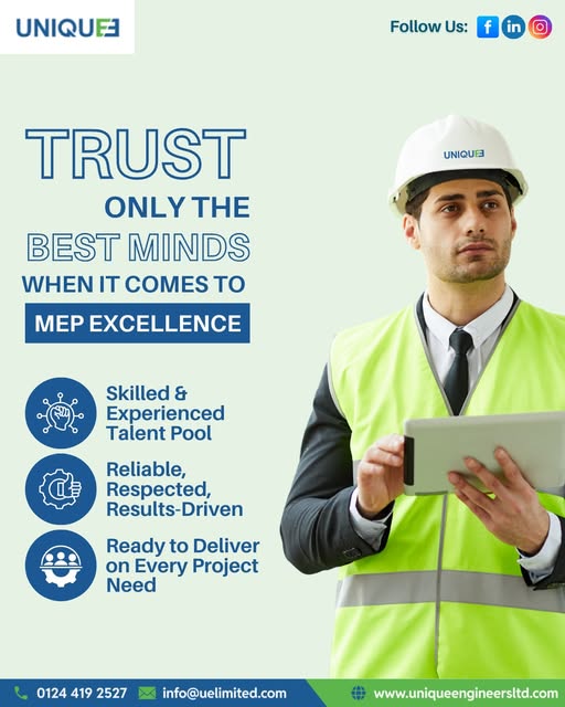 For more than three decades, Unique Engineers has been defining spaces through innovative MEP solutions. Their skillset is applied across various fields, ranging from commercial developments to healthcare, so that each project is efficient, sustainable, and innovative. Being committed to sound ethics and environmentally responsible practices, the team emphasizes intelligent design that is conducive to greater comfort and usability and minimizes ecological footprint. Their team works hand in hand with clients, learning their specific needs and turning visions into a reality. In addition to providing technical excellence, Unique Engineers are committed to enhancing spaces that enhance lives. With Unique Engineers, you are partnering with a trusted partner committed to building a greener, smarter, and future-proof world.